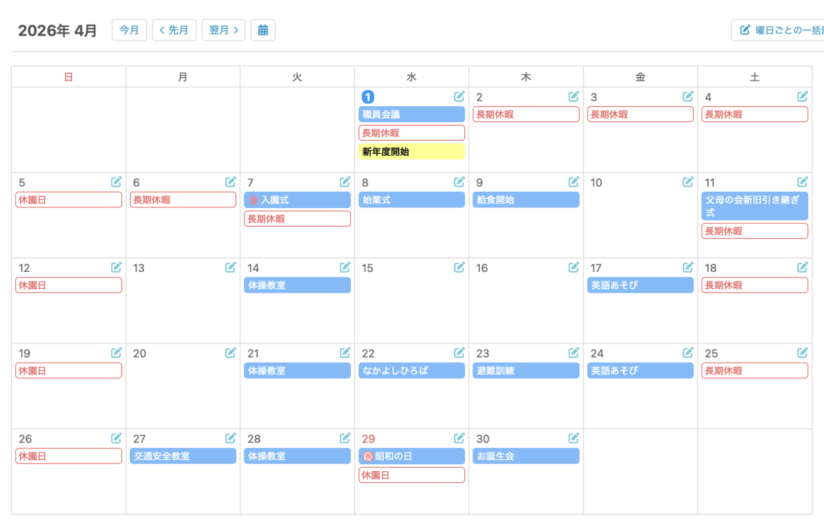 | 4月 | 入園式 | 始業式 |